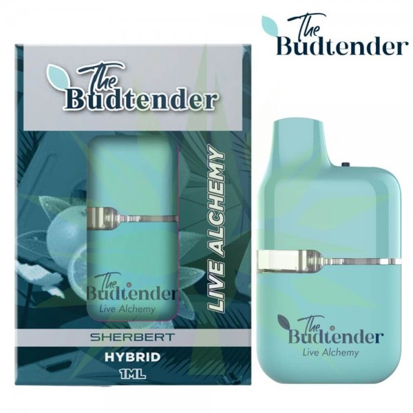 Experience the Hybrid Strain with Budtender 1ml Live Resin Disposable Vape Pen in Sherbet and elevate your vaping journey with every puff.